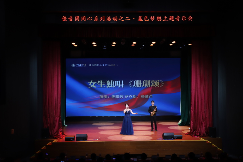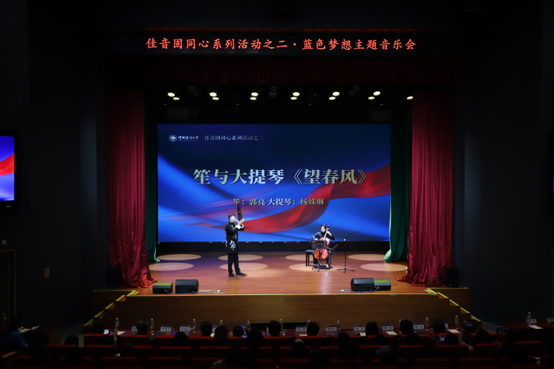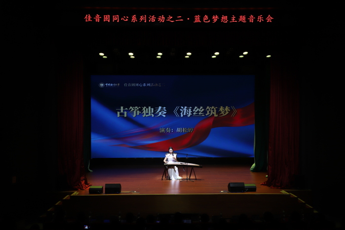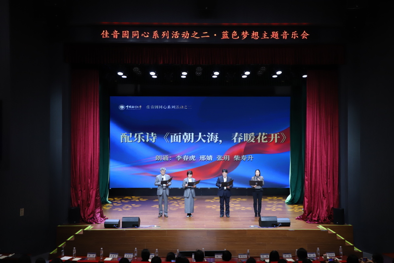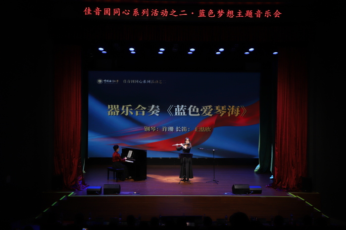 音乐会在弓弦合奏《同心圆》中拉开帷幕,以悠扬流畅的旋律,致敬中国共产党领导的新时代爱国统一战线。配乐朗诵《面朝大海 春暖花开》由学校民主党派基层组织负责人联袂呈现,以诗意的语言传递出师生追逐蓝色梦想、矢志不懈奋斗的坚定信念。笙与大提琴演奏的《望春风》,以中西对话的形式展现春风化雨、同心共融的动人意境。女生独唱《珊瑚颂》在萨克斯的伴奏下婉转深情,传递了不畏艰险、忠诚向党的崇高信念。古筝独奏《海丝筑梦》描绘了新时代“海上丝绸之路”的壮美蓝图,展现出中华儿女同心协力、扬帆逐浪共同编织蔚蓝梦想的动人场景。重唱《奉献》在钢琴伴奏中暖意盎然,以深情的歌声传递出携手同行的动人力量。钢琴与长笛合奏《蓝色爱琴海》以灵动交织的韵律,勾勒出海洋的辽阔与梦想的深远。