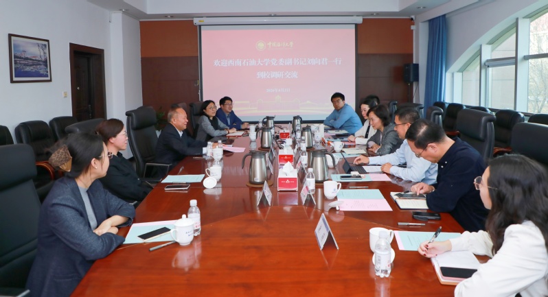 4月2日,西南石油大学党委副书记刘向君一行来校调研。学校党委副书记卢光志陪同调研并座谈。
