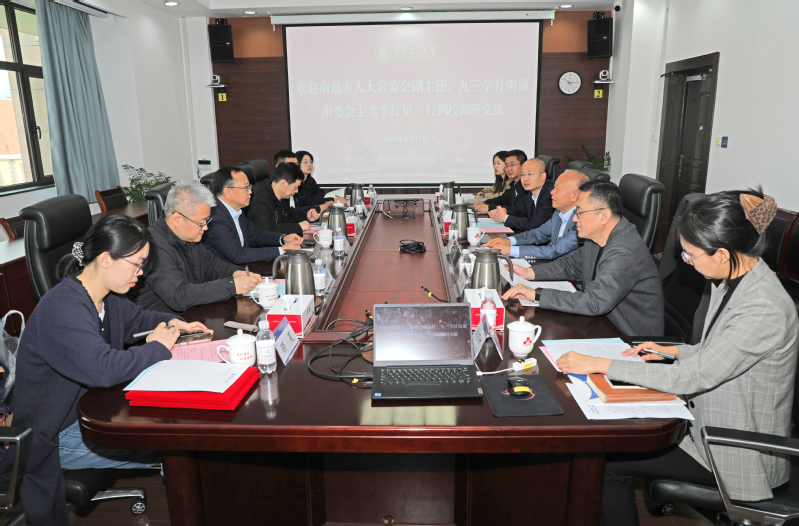 4月17日,南通市人大常委会副主任、九三学社南通市委会主委季红星一行到校开展调研交流。期间,九三学社南通市委会与九三学社中国海洋大学委员会签订“九通科创合作”共建协议。学校党委副书记卢光志、九三学社青岛市委员会专职副主委王波出席签约仪式。